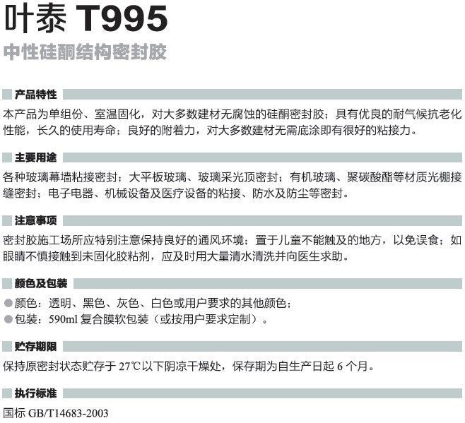 葉泰中性硅酮結(jié)構(gòu)密封膠