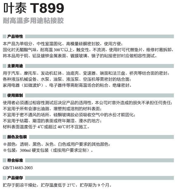 葉泰耐高溫硅酮膠