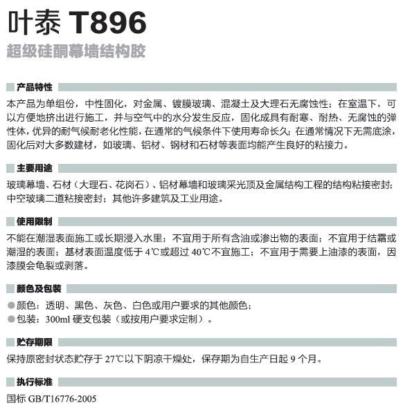 葉泰單組份硅酮結(jié)構(gòu)膠