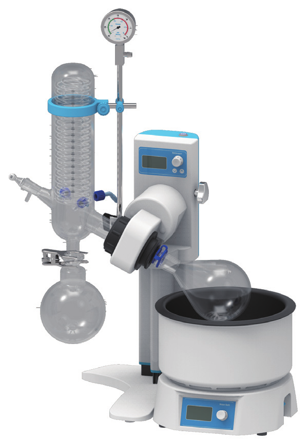 實(shí)驗(yàn)室儀器旋轉(zhuǎn)蒸發(fā)儀主要用于在減壓條件下連續(xù)蒸餾大量易揮發(fā)性溶劑。尤其對(duì)萃取液的濃縮和色譜分離時(shí)的接收液的蒸餾,可以分離和純化反應(yīng)產(chǎn)物。旋轉(zhuǎn)蒸發(fā)儀的基本原理就是減壓蒸餾,也就是在減壓情況下,當(dāng)溶劑蒸餾時(shí),蒸餾燒瓶在連續(xù)轉(zhuǎn)動(dòng)。