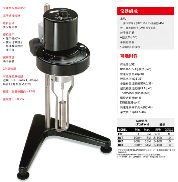 RV系列:適用于粘度高于用LV扭矩測(cè)量的材料的中等粘度材料。典型的例子包括: 奶酪、食品和油漆。