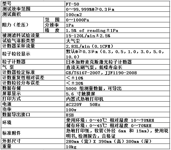 便攜式濾材過濾效率阻力測試儀 型號(hào):FT-50