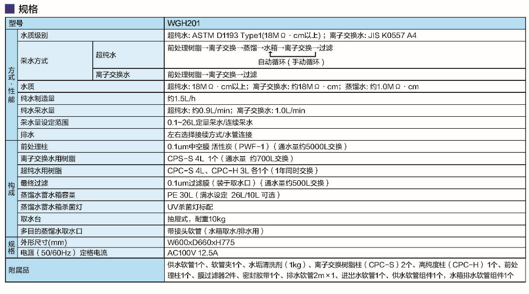 超純水制造裝置WGH201